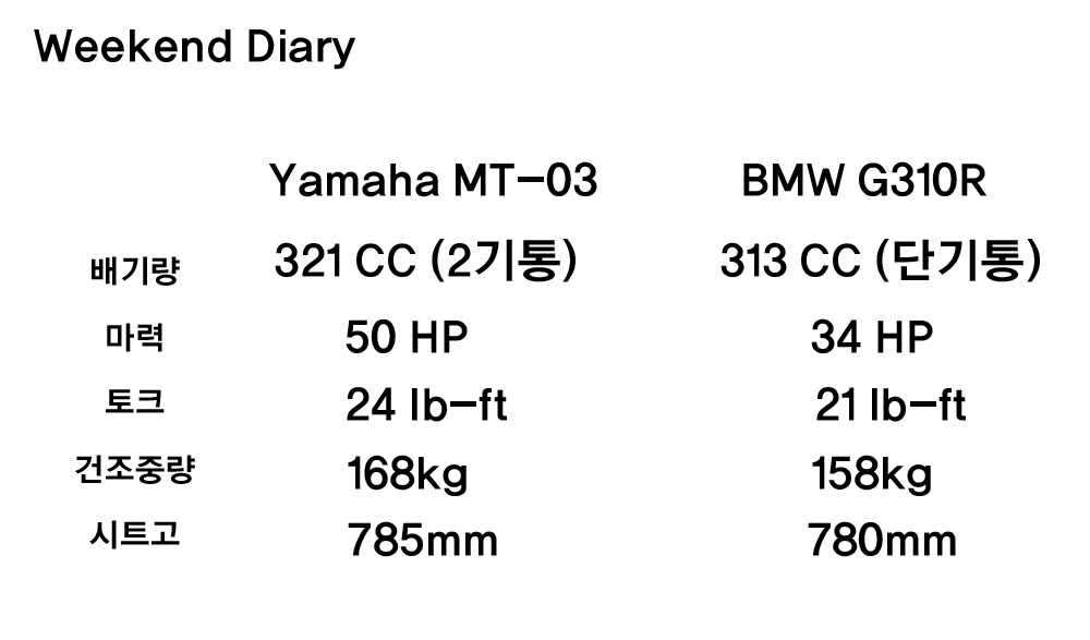우선. 제가 탔을때는 저는 G310R은 줘도 못탈것 같아요 MT03 쪽이 훨씬 취향이에요