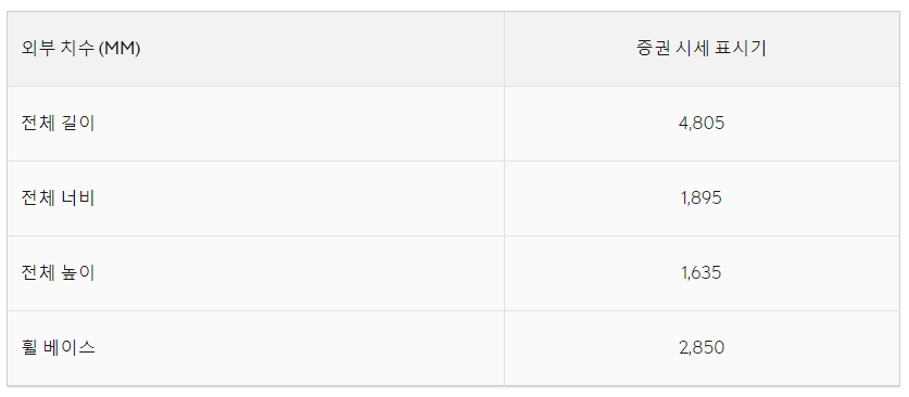 2,850mm의 긴 휠베이스는 디자인의 임팩트를 더해 낮은 무게 중심과 뛰어난 중량 밸런스를 표현합니다.