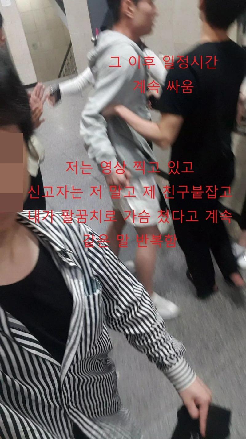 어딜 만졌냐고 물어보니 팔꿈치로 가슴을 쳤다고 합니다. (전혀 터치 없었습니다.)